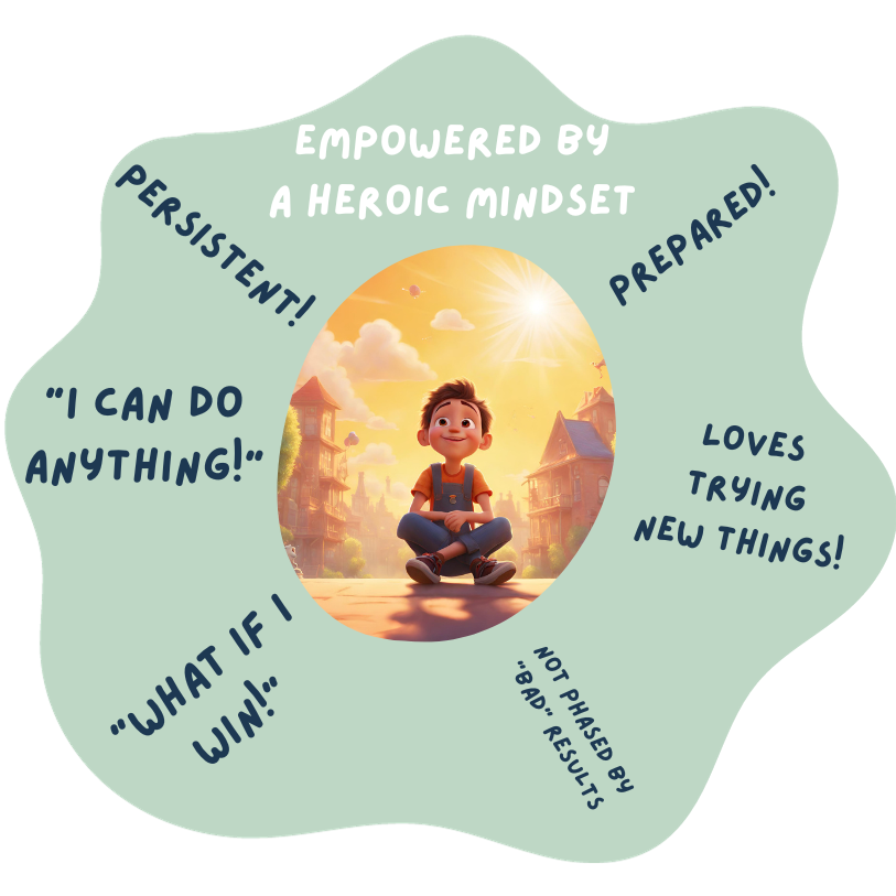 How does your hero react to adversity?If they "fail" at something new, do they want to quit?Do they tell themselves that they're not good enough?Are they worried about what other people might say about them?Are they afraid people will laugh at their dreams?If you answered "yes" to any of these, then guess what?Your hero is a real person!Life isn't always easy, and that's a good thing.How many of your favorite stories are about a character having an easy-breezy life?None. Because that's boring.Life is the same way, yet too many kids learn that "failure" is something to be avoided at all costs.They learn to judge themselves off of results.And they learn to listen to the crowd.But that's a recipe for an unhappy and unfulfilling life.The alternative is to reframe "failure" as an opportunity.An opportunity to pick yourself back up, and an opportunity to learn.How do you learn that?You learn that by embracing the Heroic Mindset.What's the Heroic Mindset?The Heroic Mindset is the superpower that world-class performers use to unleash their inner potential.It's a set of tools that your hero can reach for when adversity crosses their path.It's a recipe for calming the Storm of Self-Doubt.The Heroic Mindset is THE most powerful skill any hero can learn.And we put it into personalized stories for your hero to read every night before bed.